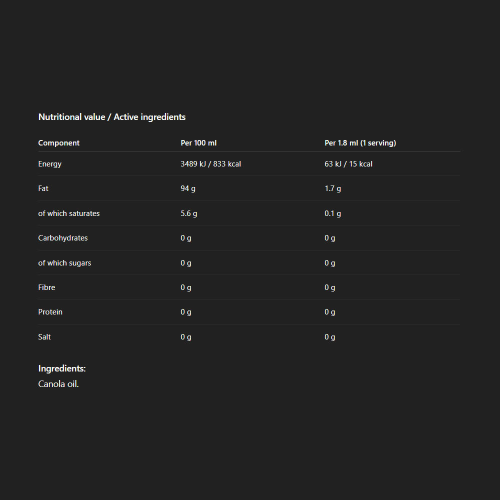 ALLNUTRITION COOKING SPRAY ist ein revolutionäres Rapsöl-Spray, das Ihre Kochgewohnheiten verändern wird. Entwickelt für alle, die gesund, lecker und ohne überschüssiges Fett kochen möchten. Die durchdachte Rezeptur ermöglicht eine präzise Dosierung, sodass Sie problemlos die Kalorien Ihrer Lieblingsgerichte reduzieren können, ohne auf hervorragenden Geschmack und Aroma zu verzichten.
