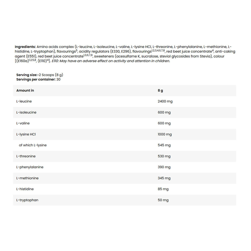 • Ein Komplex aus EAA-Aminosäuren mit erhöhtem L-Leucin-Gehalt.