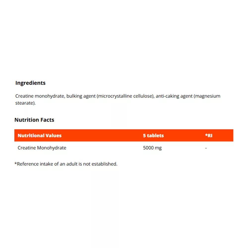 Creatine TABS sind funktionelle Tabletten, die Kreatinmonohydrat enthalten und helfen, die Leistung während kurzer Trainingsintervalle zu steigern
