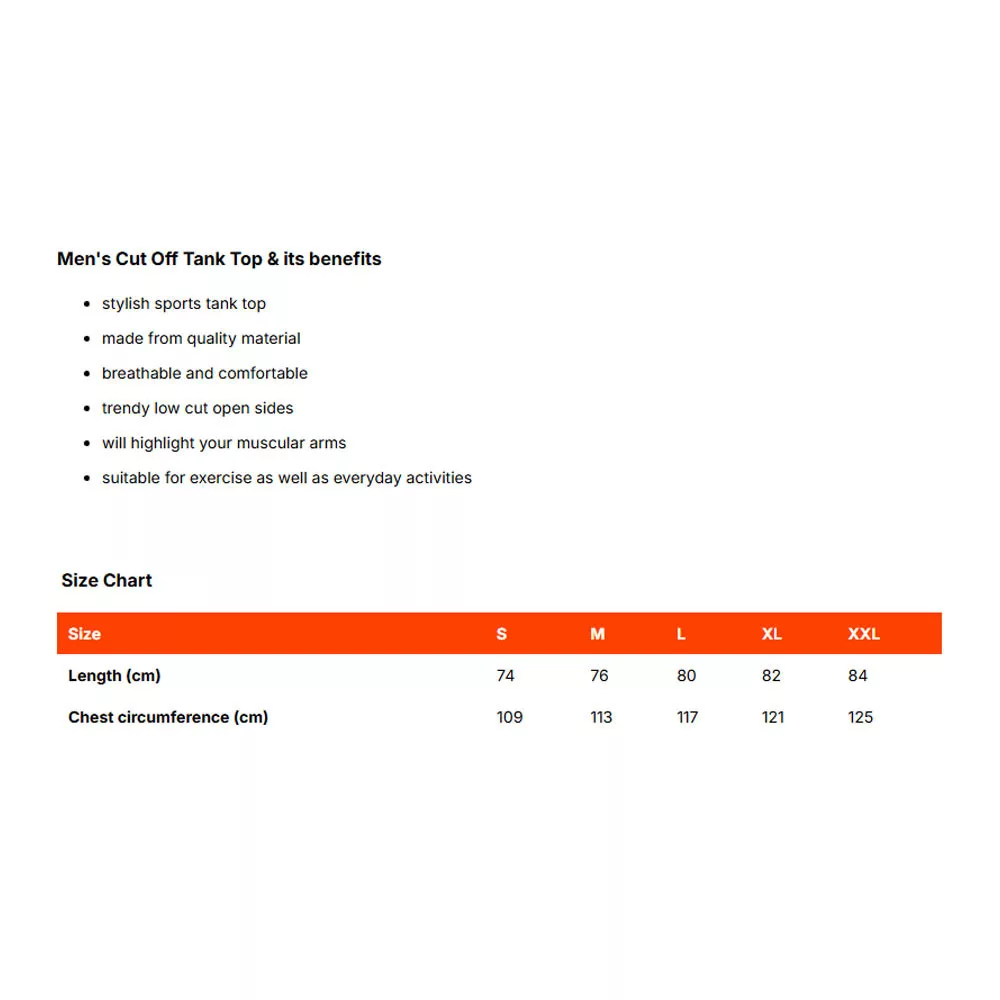 Das Cut Off Tanktop besteht aus hochwertigem Material, das atmungsaktiv ist und Schweiß aufnimmt. Dadurch kannst du dich beim Training und im Alltag komfortabel fühlen. Der einzigartige Schnitt betont deine muskulösen Schultern und Arme.