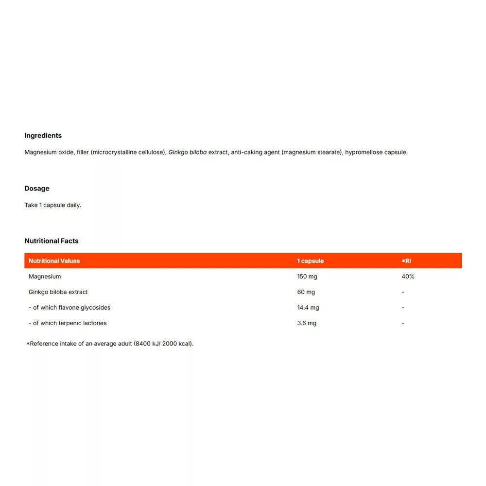 Vereint Magnesium und Ginkgo-Biloba-Extrakt zur Unterstützung der Nerven- und Energiegesundheit