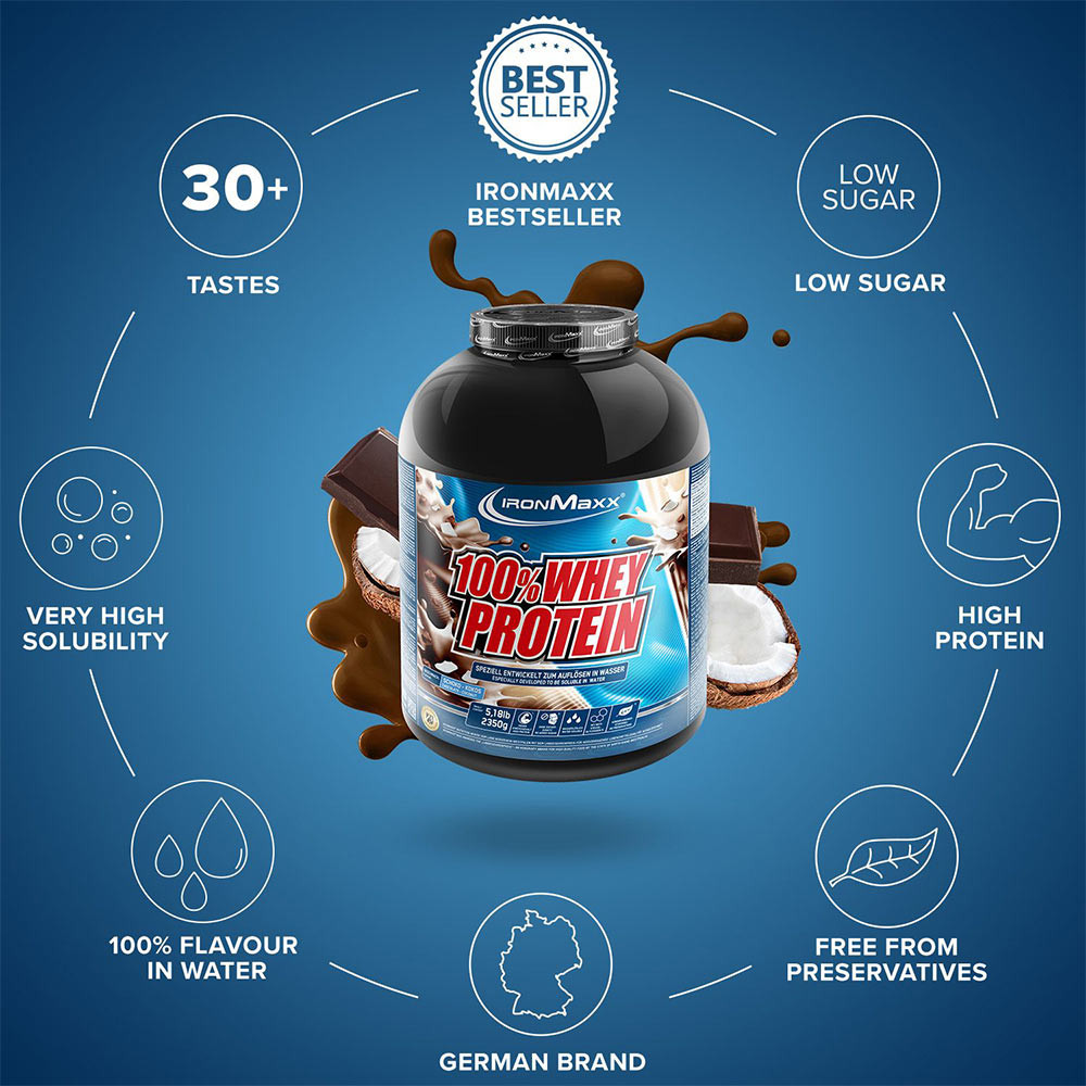 Ironmaxx IRONMAXX 100% WHEY PROTEIN (900g apple cinnamon) (2350 g, Milchschokolade mit Kokosnuss)