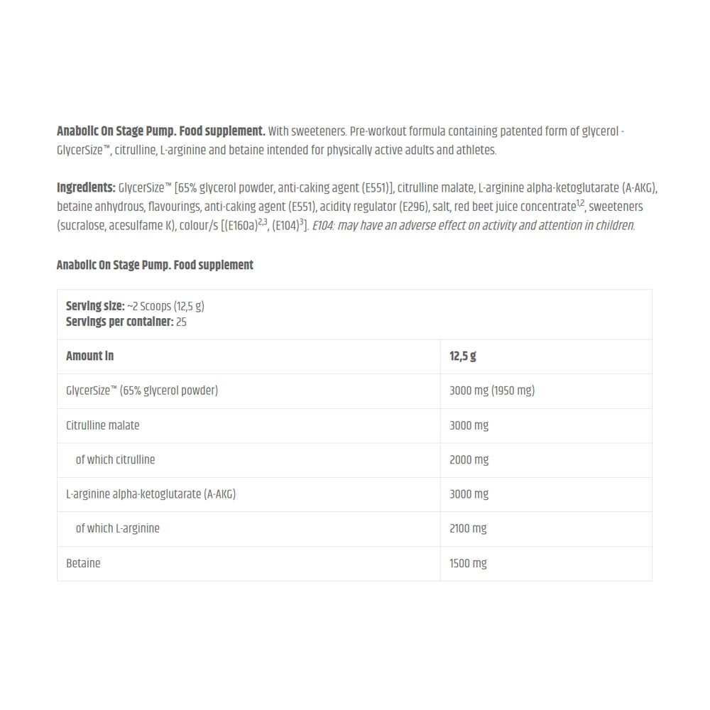 Anabolic On Stage Pump, Nahrungsergänzungsmittel, mit Süßungsmitteln.