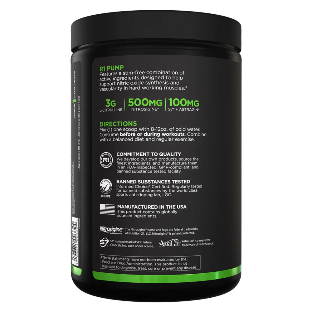 R1 Pump enthält eine fähige Kombination von Inhaltsstoffen, die entwickelt wurden, um diese Kaskade von Ereignissen zu verstärken.