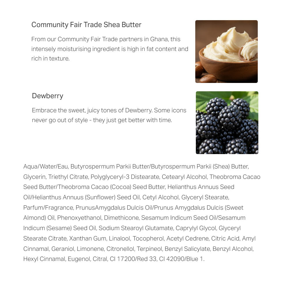 4. Für vollständige fruchtig-blumige Geschmeidigkeit mit Dewberry Body Butter kombinieren.