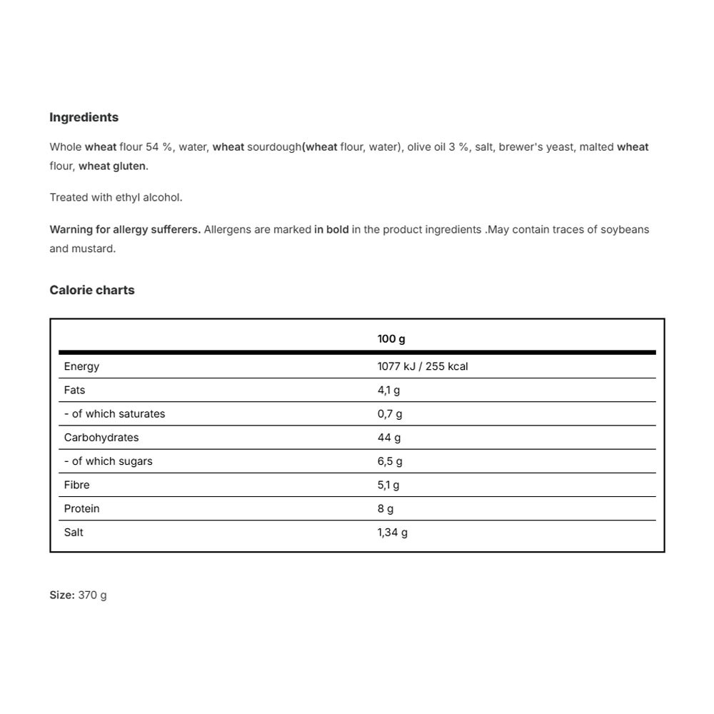• Sauerteig verleiht eine leicht säuerliche Note und fördert die Bekömmlichkeit.