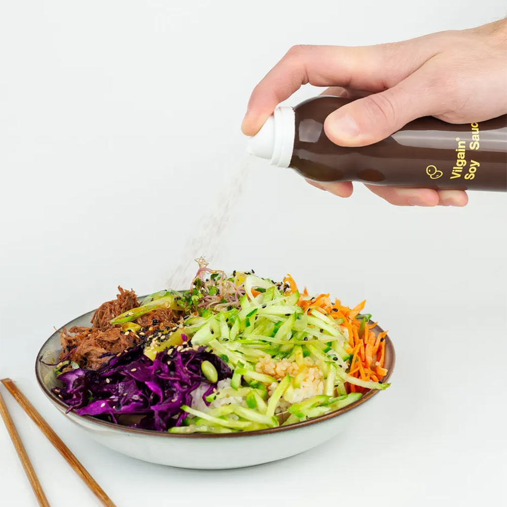 Hast du schon einmal zu viel Sojasauce auf deinen Lieblingssalat gegossen? Das Vilgain Soy Sauce Spray ist genau das Richtige für dich. Dank des Sprühformats kannst du die Menge der Sauce auf deinem Essen immer perfekt dosieren.