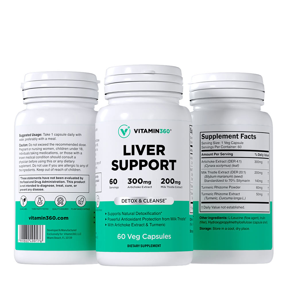 Das Vitamin360 Leber Support enthält eine kleine Menge Kurkuma-Extrakt. Der 4:1 Kurkuma-Extrakt in einer Dosis von 50 mg bietet keine eigenständigen Gesundheitsvorteile, dient jedoch dazu, die Wirkung von Mariendistel- und Artischockenextrakt zu verstärken.