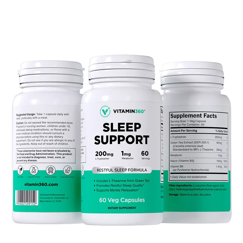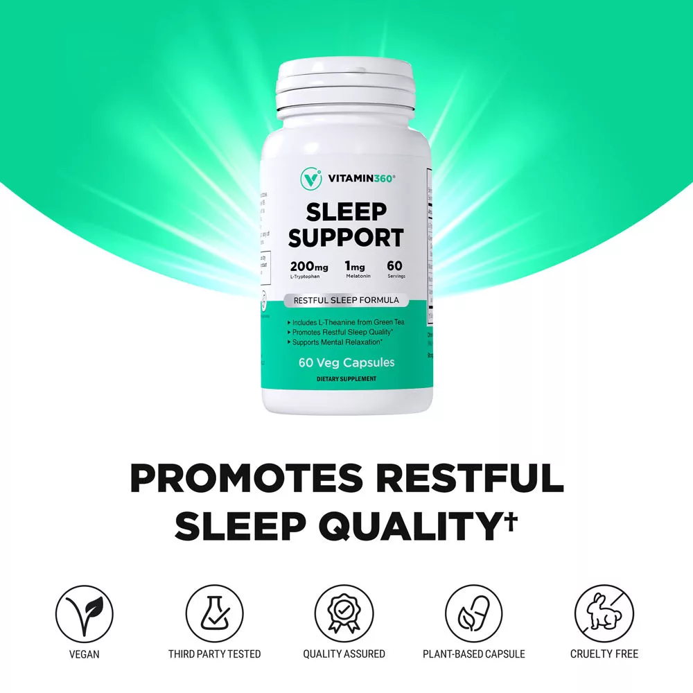 Vitamin360 Sleep Support ist eine komplexe Formel, die nicht nur das Einschlafen erleichtert, sondern auch die Schlafqualität unterstützt, sodass Sie endlich erfrischt aufwachen können.